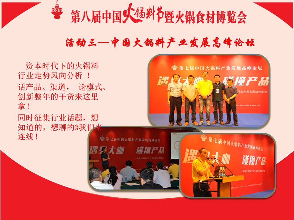 如何改變公眾消費者對火鍋料產品的認知?如何在消費升級、需求多元化的大環(huán)境下精耕細作,多渠道經營?如何在注重食品安全和生活品質的前提下做好“蒸煮煎炸的跨界火鍋料產品”?傳統(tǒng)美食工業(yè)化設備企業(yè)又將迎來怎樣的創(chuàng)新?原輔料企業(yè)又將為產品升級提供怎樣的助力?資本時代下的火鍋料產業(yè)又將迎來怎樣的變革?新競爭時代,火鍋料食材又該迎來一個怎樣的定義?