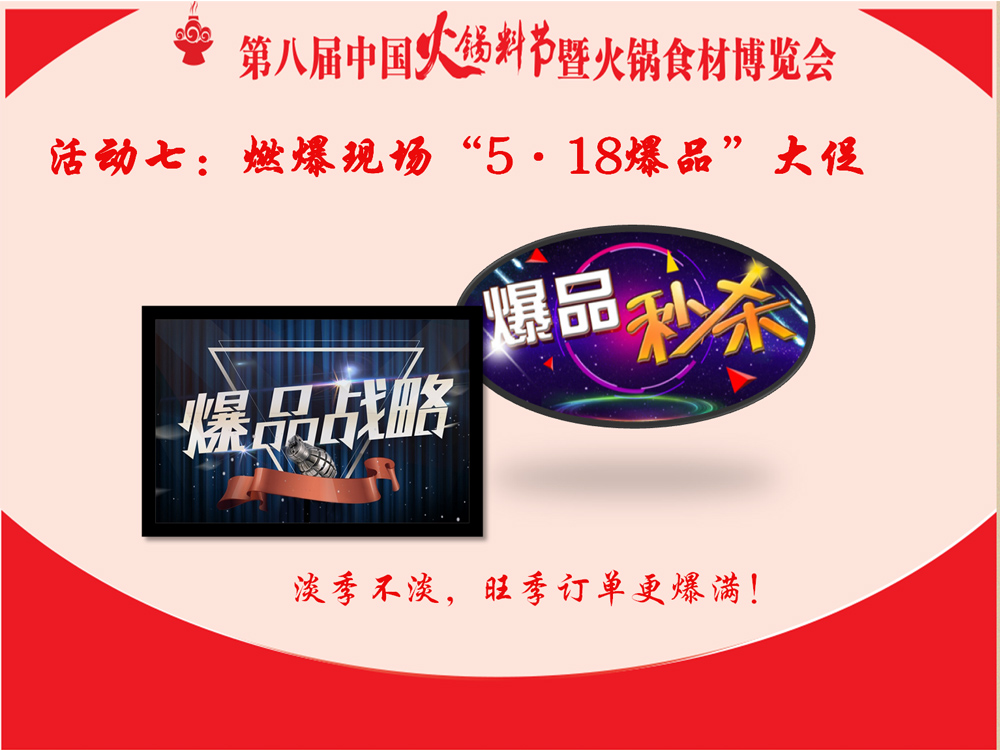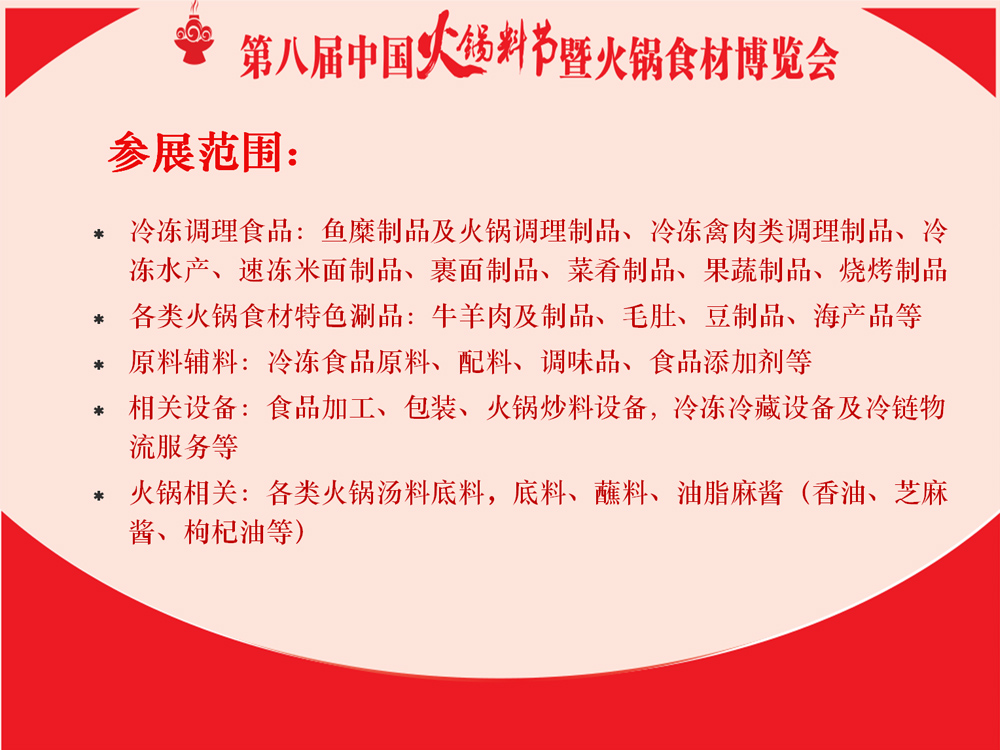 第八屆中國火鍋料節(jié),為行業(yè)引導新的方向,為企業(yè)尋找新的發(fā)展引擎,為產品尋找新的創(chuàng)意靈感,為生意尋找新的渠道機遇,相聚于此,我們一起來尋找答案!