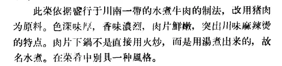 ▍1960 年,第二商業(yè)部飲食業(yè)管理局編撰的《中國名菜譜》中,要求把水煮肉片做出川味「麻辣燙」的特點。