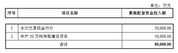 科迪乳業(yè)擬向不超過 10 名符合條件的特定投資者非公開發(fā)行股份募集配套資金,本次募集配套資金總額不超過8億元。擬用于支付本次交易現(xiàn)金對價和年產(chǎn) 20 萬噸烤腸建設項目。