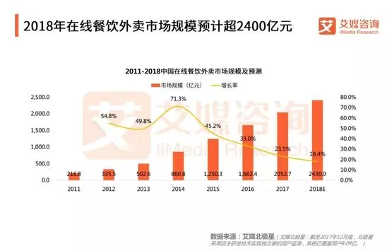 2018年在線餐飲外賣市場規(guī)模預(yù)計超2400億元