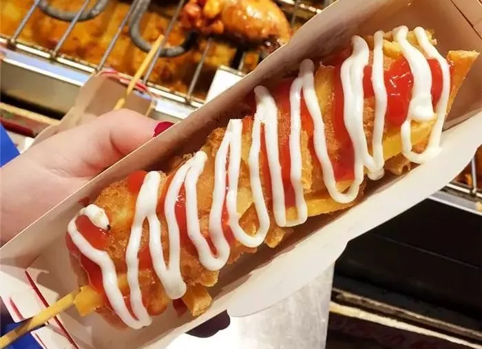 “網(wǎng)紅新品之一”拉絲芝士棒(又叫拉絲熱狗棒),也誕生在這場(chǎng)白熱化的全民狂歡中。繼源自韓國(guó)的街頭小吃“牛排杯”風(fēng)靡吃貨界之后,同樣起源于韓國(guó)的拉絲芝士棒又乘著網(wǎng)紅潮流的東風(fēng),以指數(shù)級(jí)發(fā)展速度,迅速占領(lǐng)吃貨們的心和胃。
