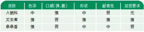 師居峰說(shuō):“部分火鍋料產(chǎn)品可以直接利用到關(guān)東煮,但有些產(chǎn)品的耐煮性需要增強(qiáng),并加竹簽。”他用一張圖對(duì)比了關(guān)東煮、串串香、火鍋料的區(qū)別。