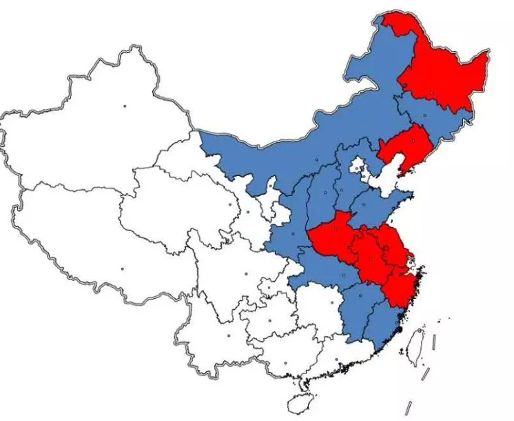 ▲ 紅色為爆發(fā)疫情省份,藍(lán)色為此次暫停調(diào)運的相鄰省份