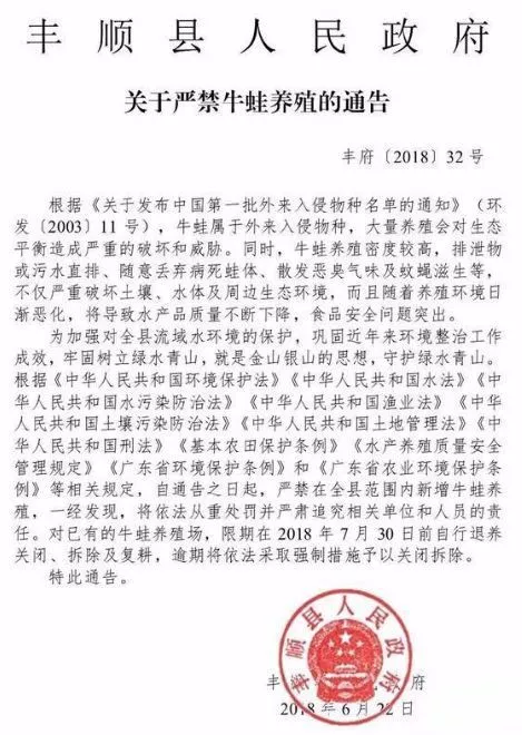 但是,由于牛蛙密集養(yǎng)殖產(chǎn)生一系列嚴(yán)重的環(huán)保問題,最近幾個月,各地禁令不斷,單單福建云霄縣、廈門同安區(qū)、龍巖新羅區(qū)、漳州、南平等地,今年6-7月份就共拆除了牛蛙養(yǎng)殖場近300萬平方米。