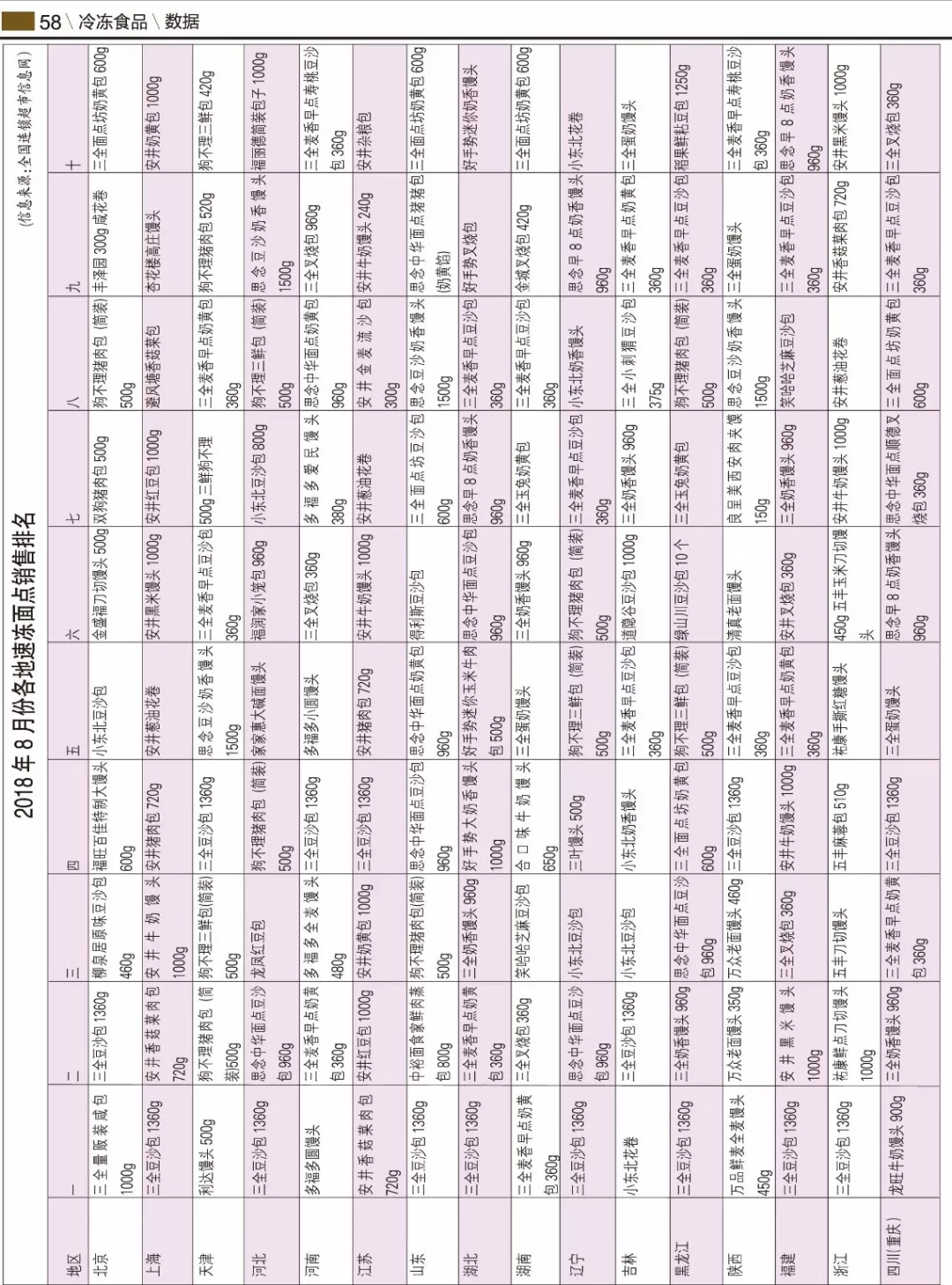 來源: 冷凍食品網(wǎng) 發(fā)布者:編輯▼2018年8月份各地速凍面點銷售排名