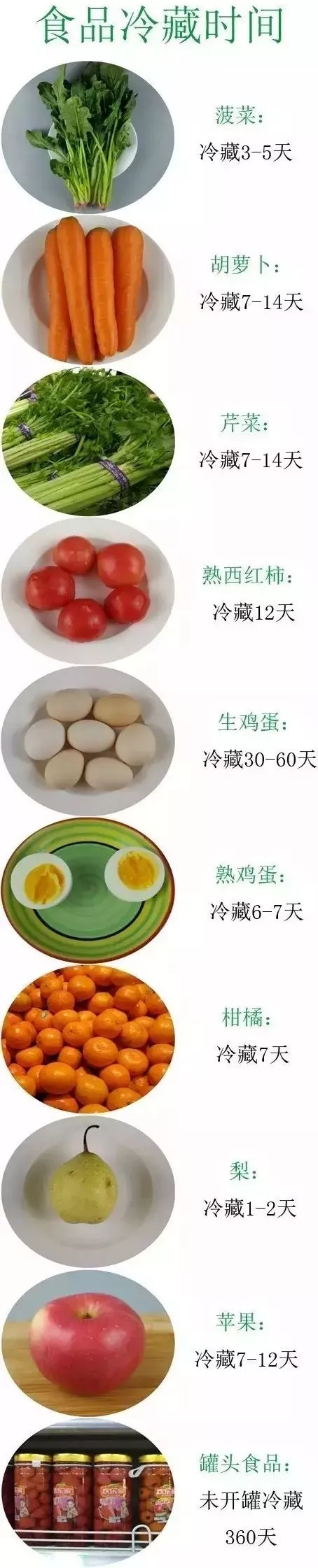 經(jīng)過上圖展示我們可以看出,一般果蔬類,蛋類以及奶類食物冷藏期都比較短,少則1~2天,多則7~14天,所以買來之后應(yīng)盡快食用。經(jīng)過高溫殺菌處理過的罐頭類食品一般保存時(shí)間較長,可達(dá)360天,像雞肉、牛肉、肉排、魚類等肉制品冷藏期普遍較短,但冷凍條件下都比較穩(wěn)定,保存時(shí)間甚至能長達(dá)360天。