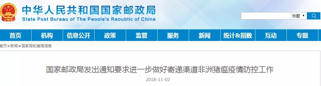 為貫徹落實國務(wù)院全國非洲豬瘟疫情防控工作電視電話會議精神,日前,國家郵政局下發(fā)緊急通知,嚴(yán)禁收寄任何豬肉類寄遞物品,督促企業(yè)凡發(fā)現(xiàn)內(nèi)件標(biāo)注為豬肉或豬肉制品的可疑包裹,一律不得繼續(xù)發(fā)運或投遞,立即扣留并及時報告,同時做好對相關(guān)運輸工具的消毒處理,堅決防止非洲豬瘟疫情通過寄遞渠道傳播、蔓延。