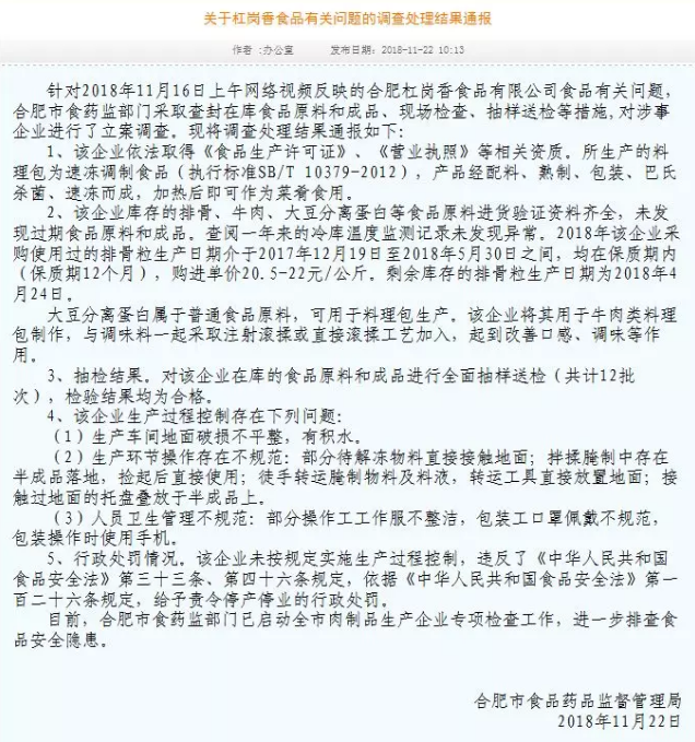 來(lái)源: 冷凍食品網(wǎng) 發(fā)布者:編輯昨天上午,合肥市食品藥品監(jiān)督管理局發(fā)布了《關(guān)于杠崗香食品有關(guān)問(wèn)題的調(diào)查處理結(jié)果通報(bào)》。