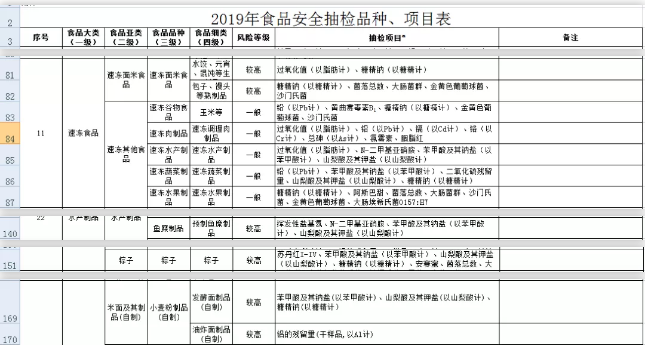 序號 食品大類(一級) 食品亞類(二級) 食品品種(三級) 食品細類(四級) 風險等級 抽檢項目a 備注