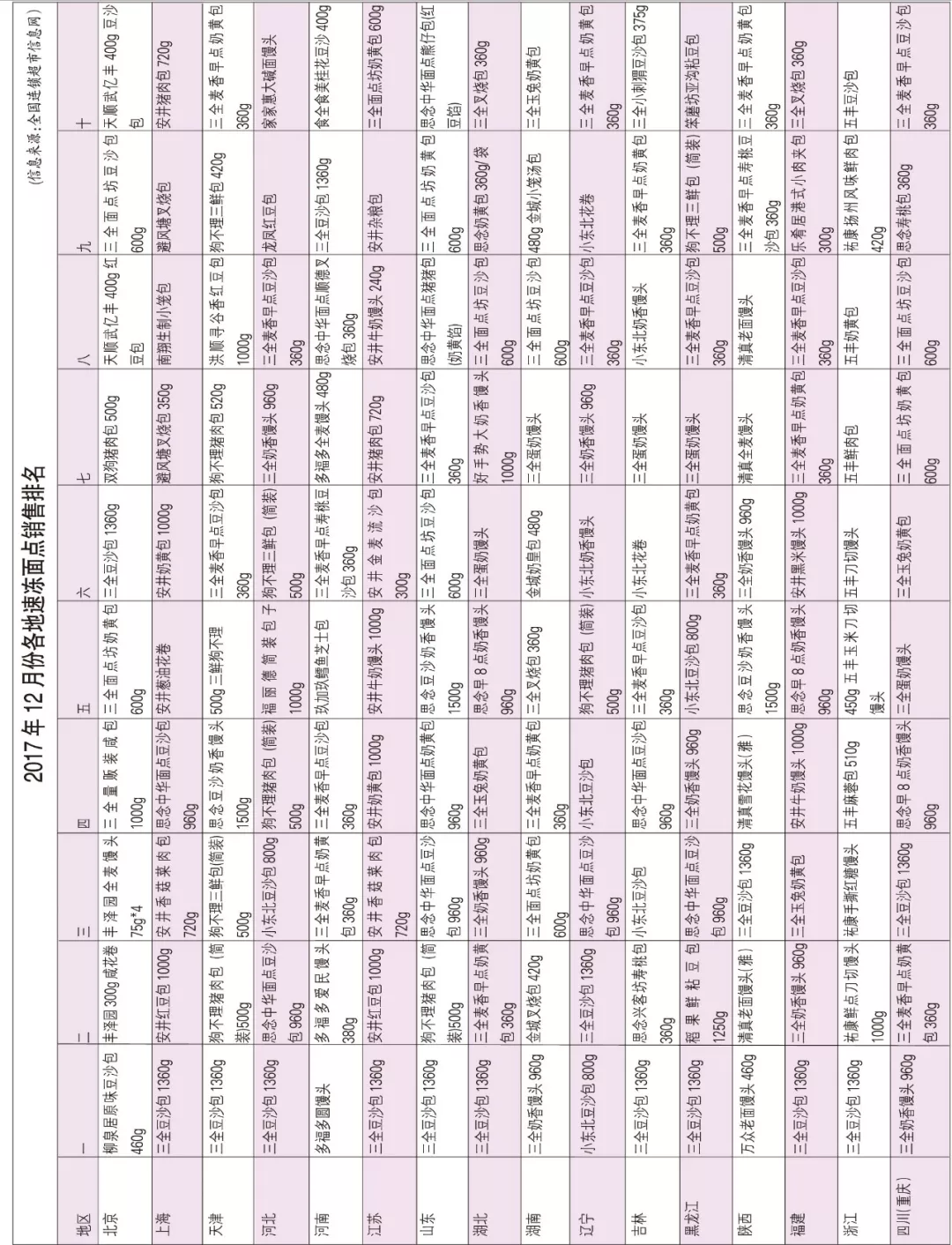 備注:該排名由全國(guó)連鎖超市信息網(wǎng)提供,數(shù)據(jù)來(lái)源于全國(guó)300多家大中小型超市系統(tǒng)的近2000家門店的冷凍食品銷量,不包含百貨商場(chǎng)及其他小店。各省份門店樣本數(shù)量不盡一致,排名情況,僅供參考。