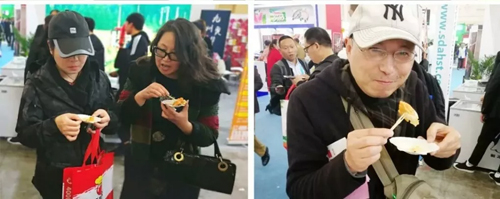 在展會上,火燒饃、卡通面點、蒸餃等米面產品也吸引了眾多觀展人員關注。