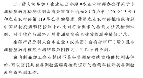 此次新規(guī)的發(fā)布,意味著此爭議話題有了官方結(jié)論:“豬肉制品加工企業(yè)也需對(duì)生豬原料進(jìn)行非洲豬瘟病毒檢測。”