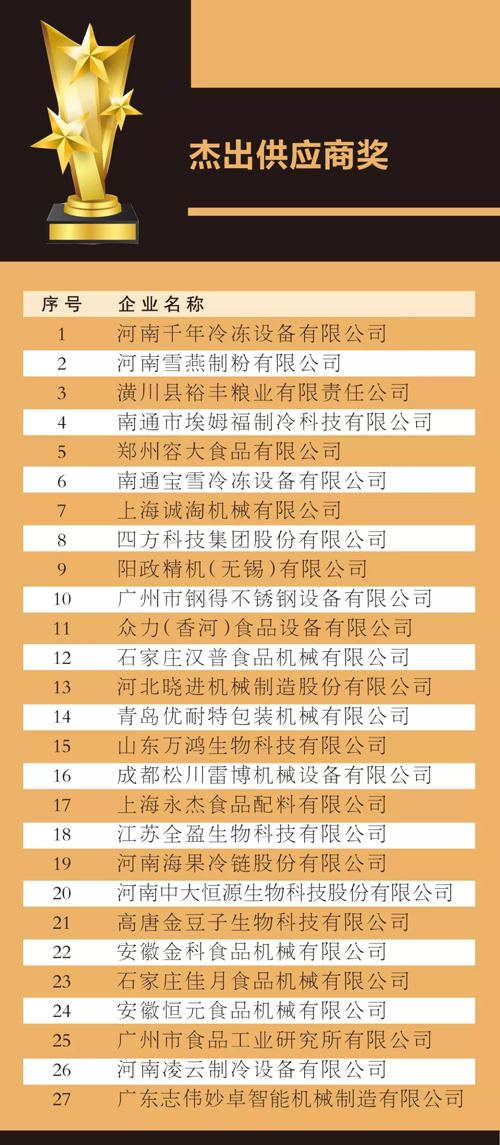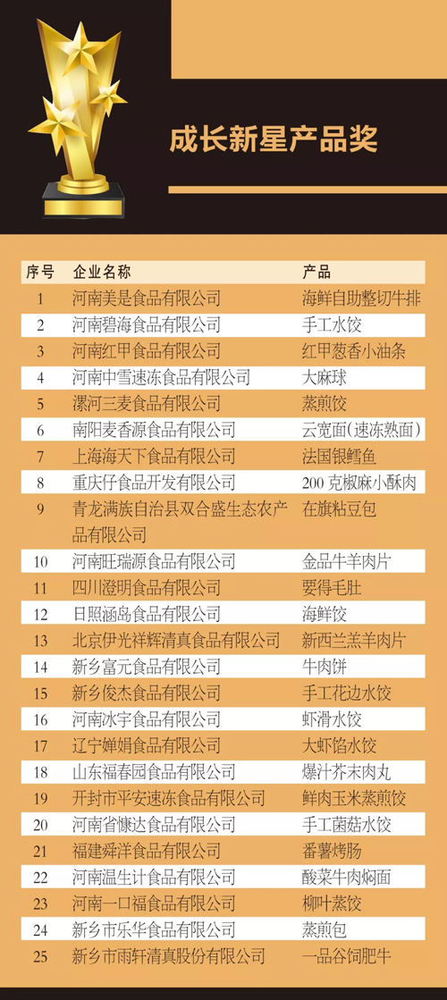 來源: 冷凍食品網(wǎng) 發(fā)布者:編輯8月18日上午,在2019中國冷凍食品產(chǎn)業(yè)大會優(yōu)秀展商頒獎典禮上,最具影響力企業(yè)獎、技術(shù)創(chuàng)新獎、成長新星產(chǎn)品獎、杰出供應(yīng)商獎4大獎項名單滾燙出爐。