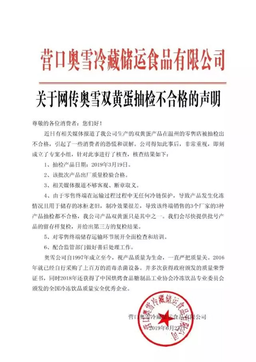 6月27日深夜,奧雪冰淇淋在其官方微博緊急回應(yīng)稱,該批次產(chǎn)品出廠質(zhì)量檢驗(yàn)合格,由于零售終端在運(yùn)輸過(guò)程中無(wú)任何冷鏈保護(hù),導(dǎo)致產(chǎn)品發(fā)生化凍情況,將配合監(jiān)管部門(mén)做好善后處理工作。