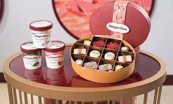 門店策略和產(chǎn)品線延伸之外,哈根達(dá)斯也深諳如何讓中國消費(fèi)者感受到它的“距離感”。它推出的冰淇淋月餅,在10多年前售價(jià)兩三百元一盒,成為中秋節(jié)送禮最體面的選擇之一。當(dāng)知名度逐漸提高,哈根達(dá)斯逐漸進(jìn)入商超渠道銷售時(shí),它也擁有自己的品牌冰柜,標(biāo)志的勃艮第紅與其他同類產(chǎn)品區(qū)隔明顯。