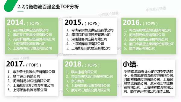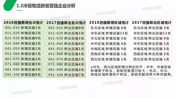 2018年中國冷鏈物流百強企業(yè)中原百強企業(yè)有75家,新晉百強企業(yè)有25家,新晉百強占原百強的?,一方面體現(xiàn)出當前冷鏈物流行業(yè)發(fā)展勢頭良好,不斷有新的企業(yè)開展冷鏈物流業(yè)務(wù)并涌入百強,另一方面體現(xiàn)出冷鏈物流百強穩(wěn)定性不高,變動較大,門檻較低。