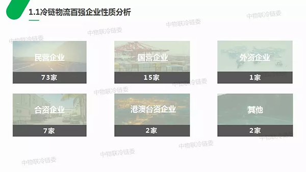 在2018年中國冷鏈物流百強企業(yè)中,民營企業(yè)有73家,國營企業(yè)有15家,外資企業(yè)有1家,合資企業(yè)有7家,港澳臺資企業(yè)有2家,其他企業(yè)有2家。民營企業(yè)是國民經(jīng)濟發(fā)展的生力軍,是推動市場化進程的重要力量。我國冷鏈物流百強企業(yè)以民營企業(yè)為主,一定程度上反映出當前冷鏈物流行業(yè)市場競爭充分,市場活力強。
