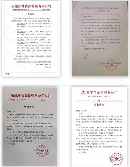 1、安井、海旺食品接連發(fā)布產(chǎn)品調(diào)價通知函
