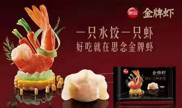 在三大米面品牌中,思念、三全、灣仔碼頭均推出了海鮮水餃,但只有思念把海鮮水餃不僅僅是做一個單品,而是上升到了品類高度——金牌蝦。