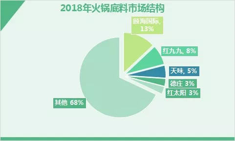 按照2018年的市占率看,排名前三的是頤海國際、紅九九、天味。頤海國際抱著海底撈的大腿,正式成為了中高端火鍋底料之王。