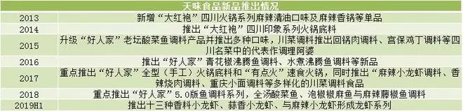 僅對比火鍋底料這一塊,頤海國際推出的新品要更多一些,天味食品在川菜調(diào)味料上的創(chuàng)新也是不容忽視的。