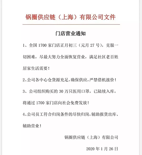 上海瑞軒食品有限公司則針對(duì)疫情下發(fā)了緊急通知。