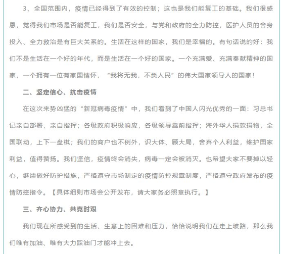 第三批復(fù)工:省外回來(lái)的商戶;時(shí)間:另行通知