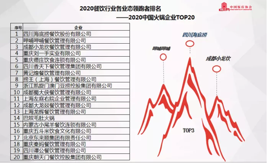報告顯示,在2020餐飲行業(yè)各業(yè)態(tài)領(lǐng)跑者排名(2019財年)中,正餐前3名品牌分別為,杭州飲食服務(wù)集團(tuán)有限公司、山東凱瑞商業(yè)集團(tuán)、北京華天飲食集團(tuán)公司;海底撈、呷哺呷哺、小龍坎為火鍋類排名前3名的企業(yè);快餐小吃前3名品牌為楊國福、張亮和老鄉(xiāng)雞;休閑餐前3名為豪客來、水天堂和嘉和世紀(jì)。
