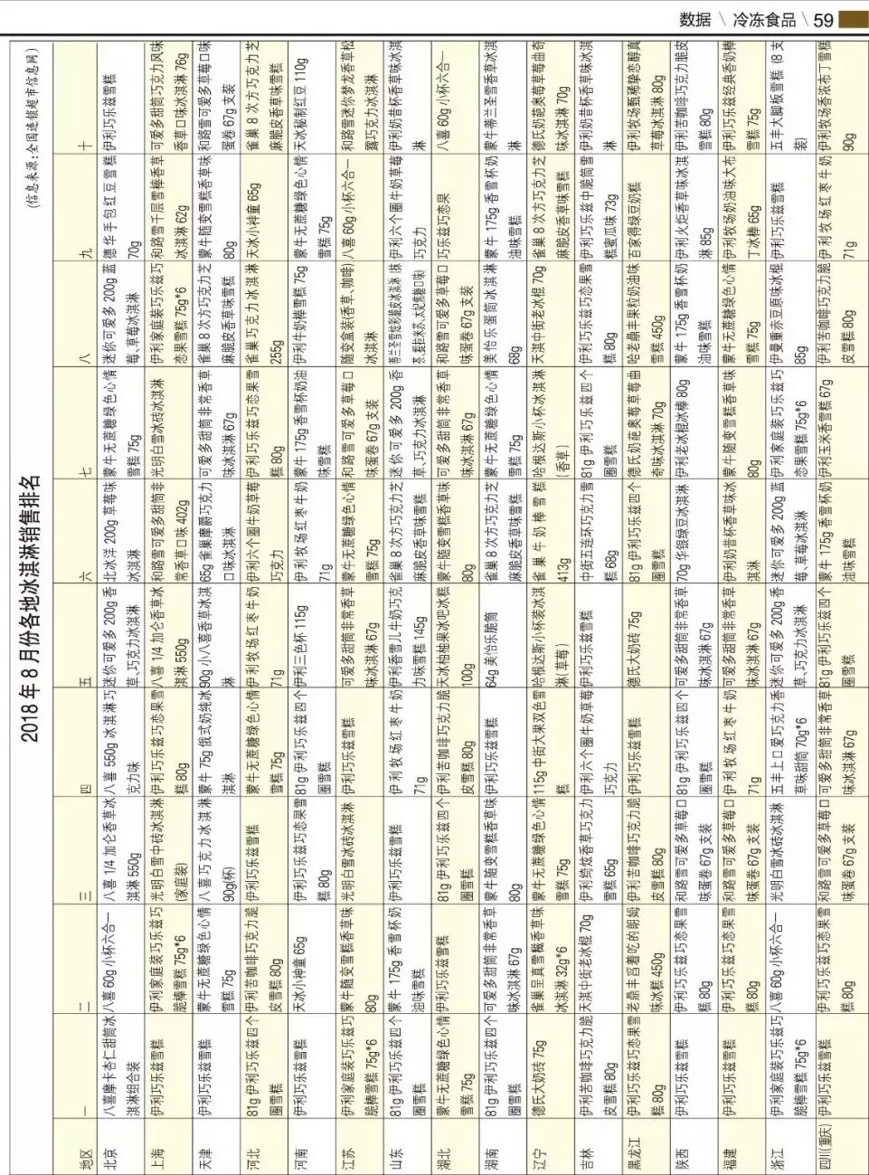 來源: 冷凍食品網(wǎng) 發(fā)布者:編輯▼2018年8月份各地冰淇淋銷售排名