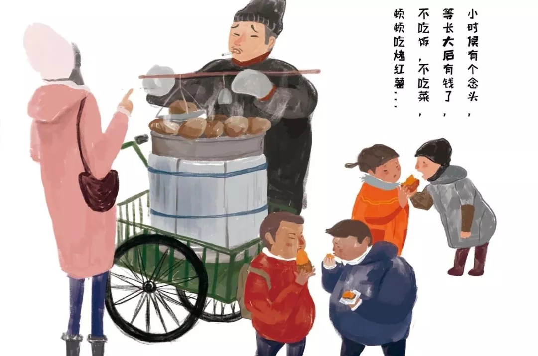 在鄉(xiāng)村,寒冬里親朋好友圍坐烤火取暖時,順便烤上幾個紅薯,邊吃邊聊天,是許多人對老家的永恒記憶;在都市的街頭巷尾,大爺大媽們推著帶輪的烤箱賣烤紅薯也是一道常見的風(fēng)景;下班后或周末的晚上,用微波爐、電烤箱等烤紅薯更是許多家庭的日常。