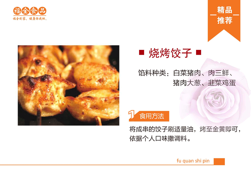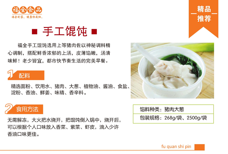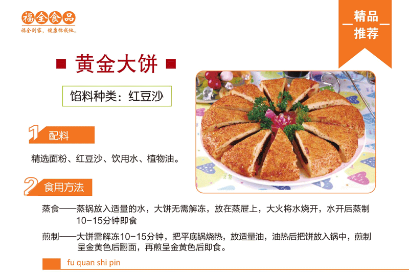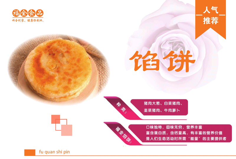 近年又相繼推岀大四喜、手抓餅、餡餅、雞蛋灌餅、春餅、餛鈍、黃金大餅、燒烤餃孑、水餃、水煎蒸餃等速凍食品。制作層層把關(guān),以顧客滿意為目標,依靠創(chuàng)新求發(fā)展,以更好的質(zhì)量和更高的效率保持企業(yè)的生命力,用誠信贏得廣大顧客的信賴,永遠不變的是我們的理念:真才實料、品質(zhì)至上、誠信經(jīng)營,進而提升“福全”品牌的美譽度.